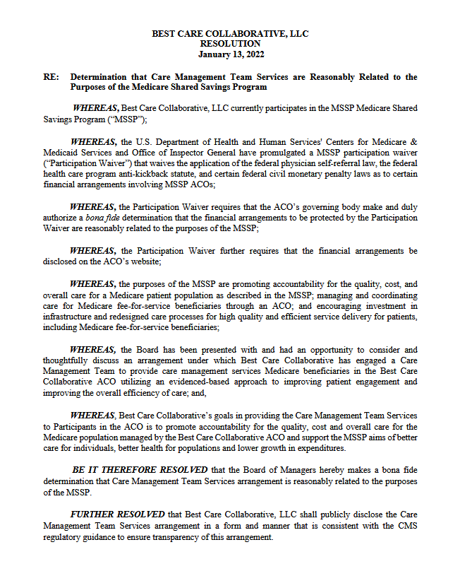 | ACO NAME | BEST CARE COLLABORATIVE, LLC | ||